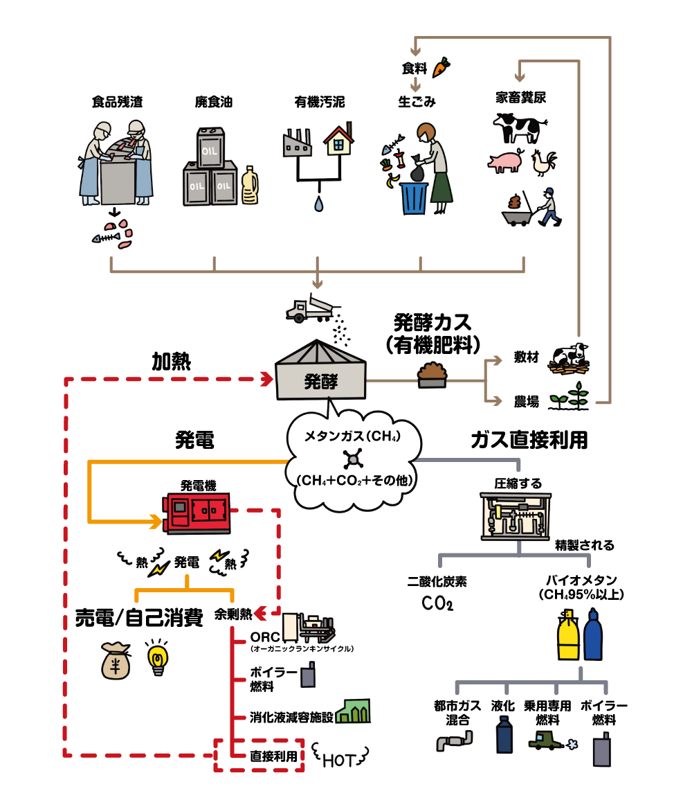 ・発電、熱利用、バイオメタンの