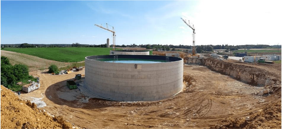 Dole|FranceDOLE BIOGAZ – 261 Nm3CH4/hDole(France) – 工事中原料 : 30 150 t/年•糞尿•生ごみ•トウモロコシのサイレージ•エネルギー作物•穀物技術•フック式自動投入 + tri ballistique•原料投入システム Premix•固液分離•スクリュープレス + 遠心分離機•ガス精製 :膜技術NASKEO業務範囲•ターンキー方式施工•施設の建設管理湿式施設の問合せ湿式施設の実績
